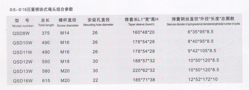 一般錐套型繩頭用的較多。繩頭組合規(guī)格有8mm/10mm/12mm/14mm/16mm等,其他專用規(guī)格可定制生產(chǎn)。